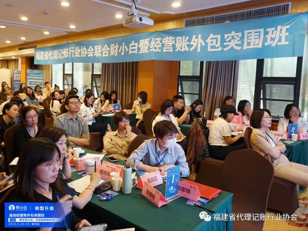 5月24-25日为助力财税服务行业的高质量发展,福建省代理记账行业协会联合财小白将《高效经营账外包突围班》落地福州,来自福建以及周边省份三十多家财税机构60多个财税精英们一同相约,共度两天一夜的经营账外包突围课程学习!