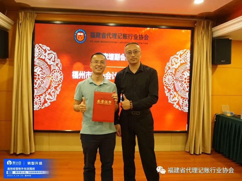 这次赋能活动上,福建省代理记账行业协会热烈欢迎三位副会长的加入,给福建省代理记账行业协会带来新鲜的血液。分别是福州市壹心会计服务有限公司郭家增副会长;福建智会算财税咨询有限公司吴尚芸副会长;福建壹企无忧企业管理有限公司杨增德副会长。由福建省代理记账行业协会副会长陈宙峰给与授牌。陈宙峰副会长对此次赋能开班致辞和总结,作为行业协会单位希望在行业的变革上能给与会员单位最新的消息和帮助。
