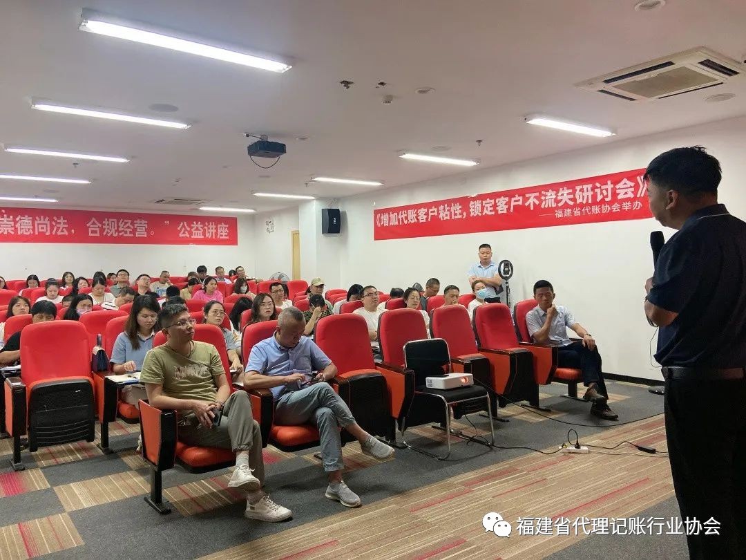 6月27日下午,由福建省代理记账行业协会举办的《增加代账客户粘性,锁定客户不流失研讨会》在福建福州如期开展。现场共计30多家,50多个会员单位参加本次研讨会。