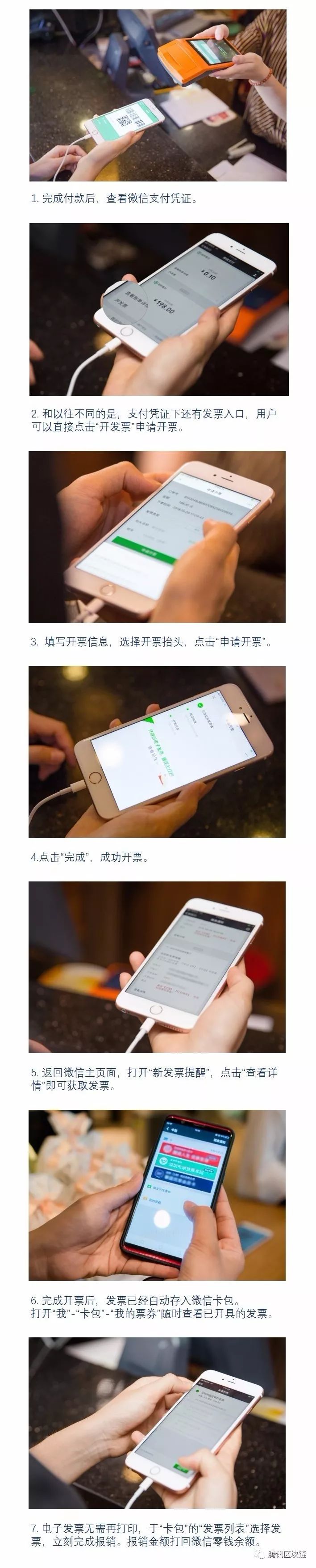 “区块链电子发票”是采用了区块链技术的一种无需税控设备的免费、易用、安全的电子发票。能够实现发票申领、开具、交付、查验、报销的全流程线上管理,每个环节都可追溯,且开票方、消费者、报消方、监管方均可通过接入系统,降低相关成本。区块链电子发票还可与支付系统绑定,实现资金流、发票流“二流合一”,交易即开票,无需额外设备,通过手机就能收款开票。