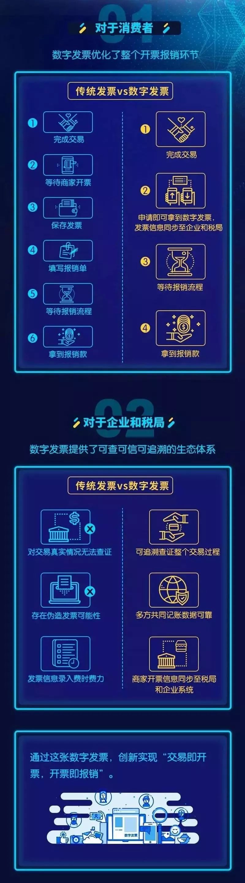 因此,纳税人的每一笔业务将不再需要用发票来证明真实性,所有交易信息的记录均真实完整,从而实现以账管税、以数据管税。