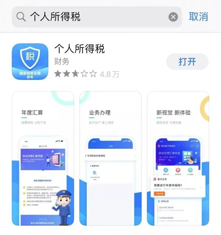 苹果手机可以在app store里面搜索个人所得税,下载个人所得税APP: