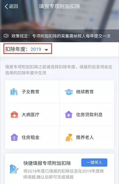 注意扣除年度选择2019年,然后填写专项附加扣除信息。