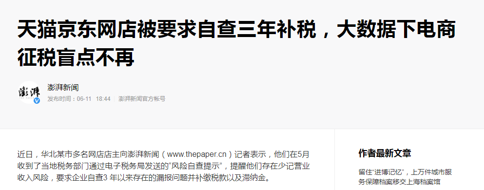 此前平台数据与税务部门间不完全开放,一些企业利用了这点进行逃税。现在大数据时代来临,税务部门有条件获得完整的电商平台数据,一家网店一年到底有多少营收,很容易看到!