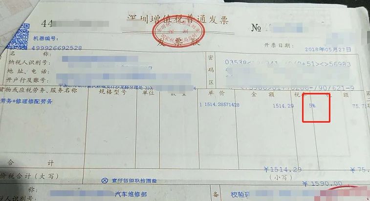 上面两张发票,一张是汽车修理修配业务,一张是餐饮服务,税率都开的5%的发票。