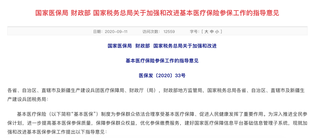 9月11日,国家医保局发布了《关于加强和改进基本医疗保险参保工作的指导意见》。