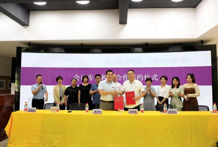 6月23日福建省代理记账行业协会与福建水利电力职业技术学院的经济管理学院签订校企合作。在该校VR综合实训基地就会计类专业举行专业共建签约、人才培养基地与教师企业实践基地揭牌、产业导师聘任、学生实习就业专场宣讲等相关活动。福建省代理记账行业协会会长林梦忠,福州信和财智财税咨询有限公司总经理宋宜美以及福州快点办财税咨询有限公司、福州精账司财务管理有限公司代表和学院党委委员、副院长兼经管学院院长池长全及班子成员及会计20级学生参加本次活动。